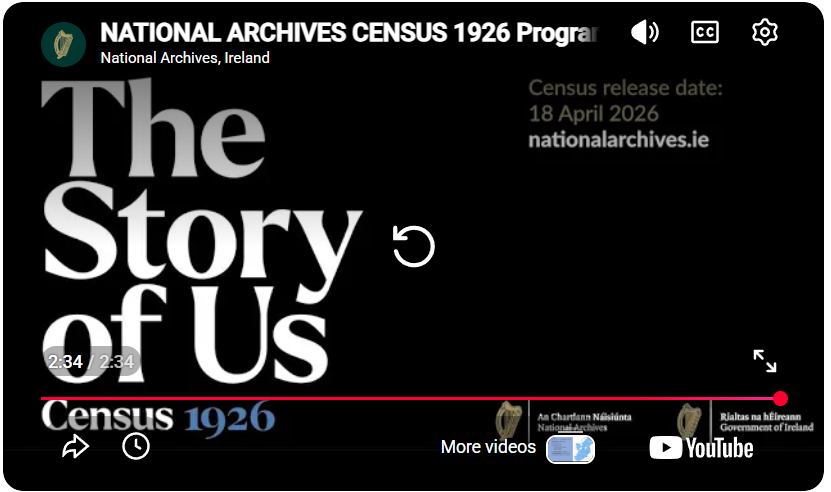 In 1921 Ireland was engulfed in the War of Independence and then the Irish Civil War. So the 1921 census was postponed. On April 18th 1926 the first census of the 26 counties of the Irish Free state was carried out. Now 100 years later the records have been digitised and transcribed and will be available free on the National Archives of Ireland website from April 18th.
