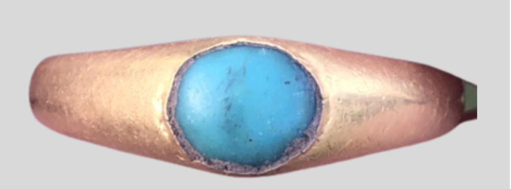 Nantwich Museum has the opportunity to acquire this beautiful ring discovered by members of the Crewe and Nantwich Metal Detecting Society in the reed bed field near the mere in the grounds of Combermere Abbey. The find is a magnificent ring with inset turquoise stone which, apart from being an uncommon gem for this age of ring, is larger than other examples.