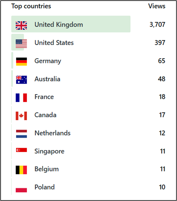 In the past, we have received enquiries from as far afield as New Zealand and Canada, as well from across the The table below shows the locations of visitors to this website in the last 12 months.